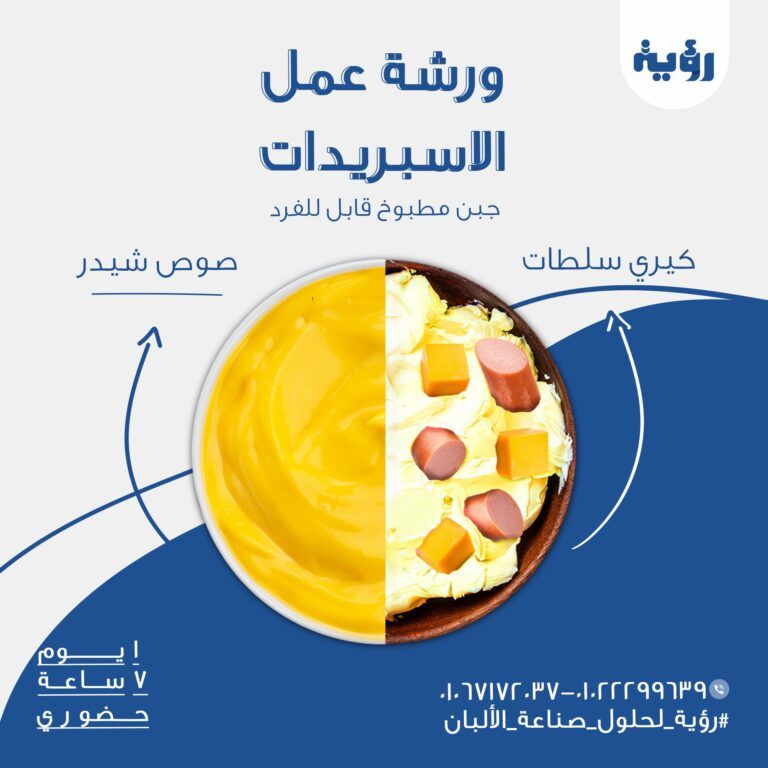 ورشة عمل مكثفة عن صناعة الجبن الاسبريد القابل للفرد ( طبيعى – نباتى -سلطات ) وعن صناعة صوص الشيدر