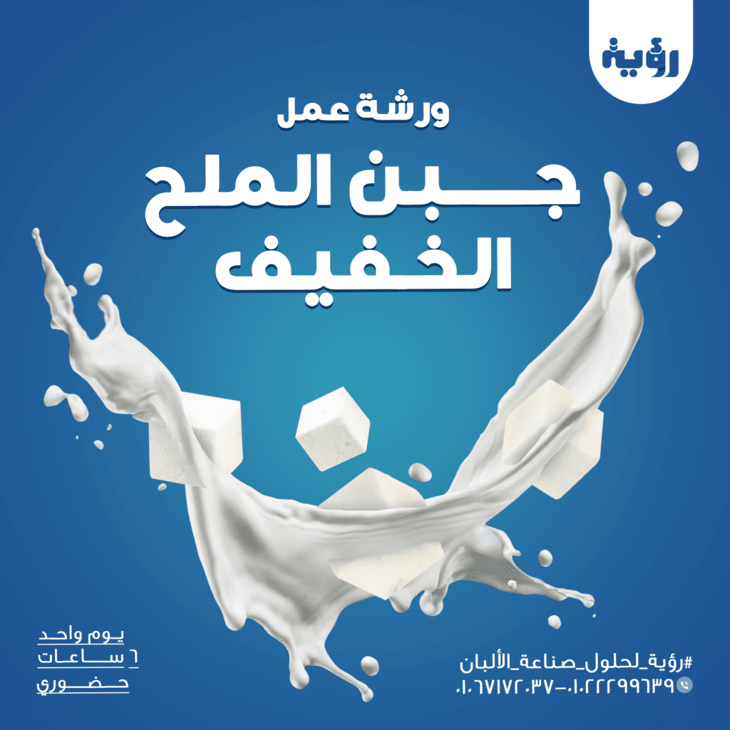 ورشة عمل مكثفة عن صناعة الجبن الأبيض الطرى الملح الخفيف ( ملح خفيف طبيعى – -ملح خفيف نباتى – ملح خفيف عبوات صب )