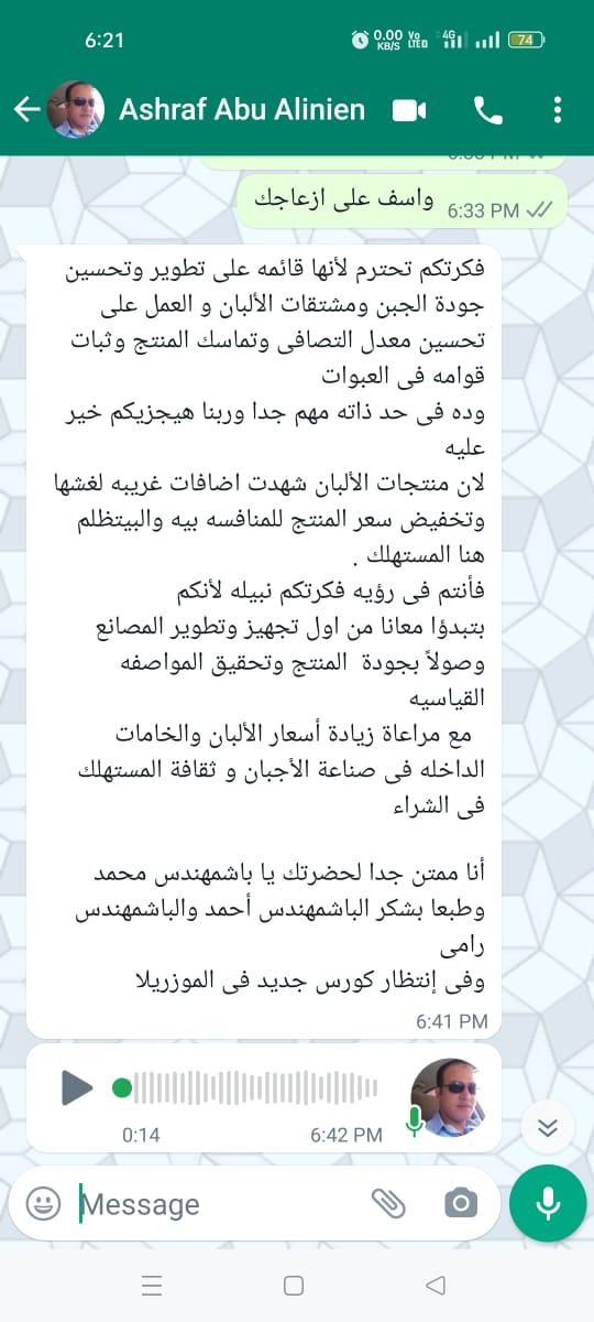 فكرتكم تحترم لأنها قائمه على تطوير وتحسين جودة الجبن ومشتقات الألبان و العمل على تحسين معدل التصافى وتماسك المنتج وثبات قوامه فى العبوات وده فى حد ذاته مهم جدا وربنا هيجزيكم خير عليه